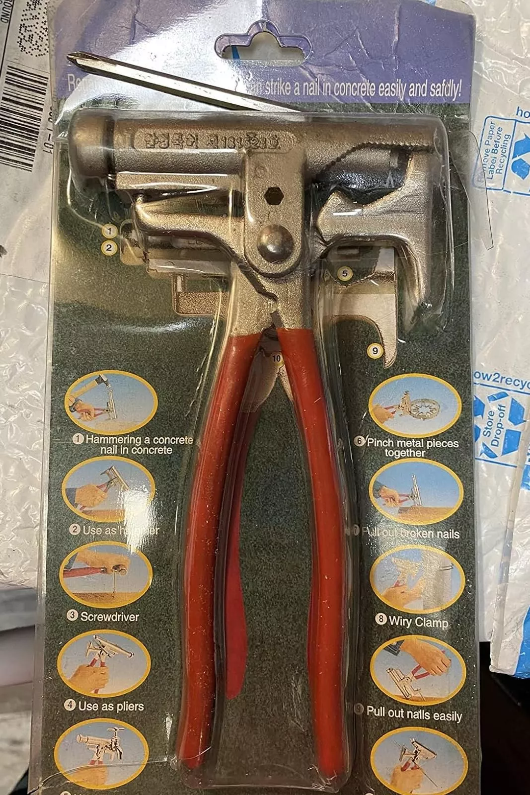 This multifunctional tool is especially handy for driving nails into walls, ensuring steady nail placement and reduced injury risk. The handle feels a bit thin, raising some concerns about durability with extended use. Overall, I'm pleased with this purchase and would recommend it to others who are looking for a tool to assist with their nailing needs.
