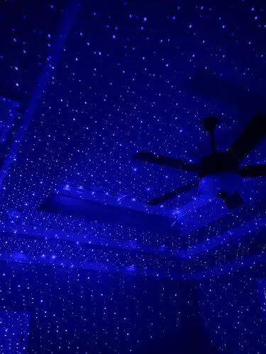 For those questioning the brightness of this projector, it's important to realize its uniqueness. It's not a typical blue laser but acts more like a blacklight, illuminating white surfaces splendidly. It's surprisingly bright and does an excellent job of creating a celestial atmosphere. I highly recommend it for its intended purpose – it truly transforms your space