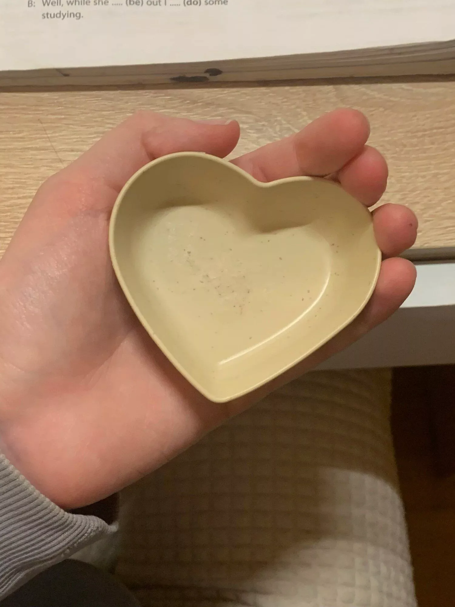 The cutest plate! Very comfortable, stable, roomy (M & M's 45g bag will mix perfectly), I think I will order a couple of different things!! These little heart bowls are so pretty. My cats eat fancy feast and they are the right size for a serving of food, my cats get fed 4-5 times a day, I just stick them in dishwasher and they come completely clean and i use sanitizer rinse cycle..