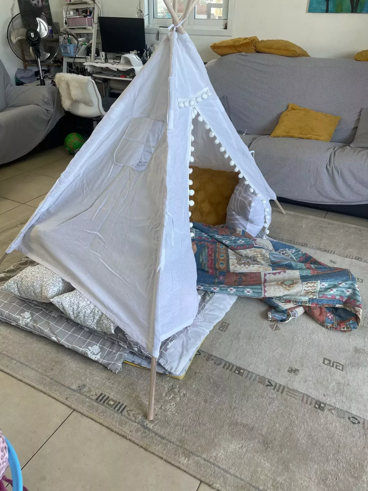 Our girl loves her quiet time tent for playing and chilling. It matches our boho theme, is easy to assemble, and folds up easily. I just wish it had a way to keep the bottom straight.
