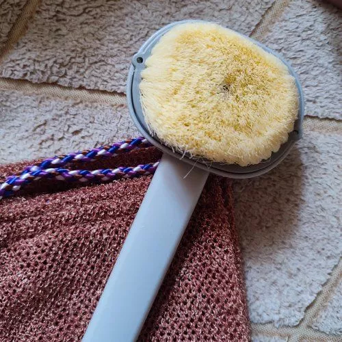 As someone with sensitive skin, I find this brush to be the perfect balance of effective exfoliation and gentleness. It's rough enough to do its job but doesn't leave harsh marks. The long handle is great for reaching all areas, although a grip for better handling when wet would be a nice addition. The brush head is smaller than expected, but it still works well. A great, affordable choice