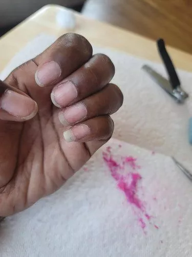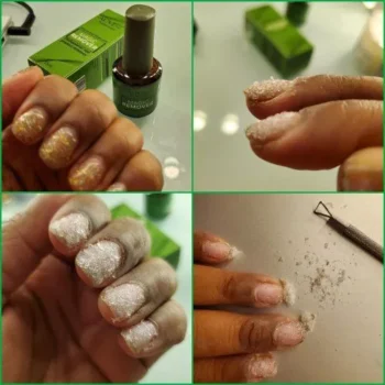 • Gently peel off and remove the residue, revealing clean and healthy nails.