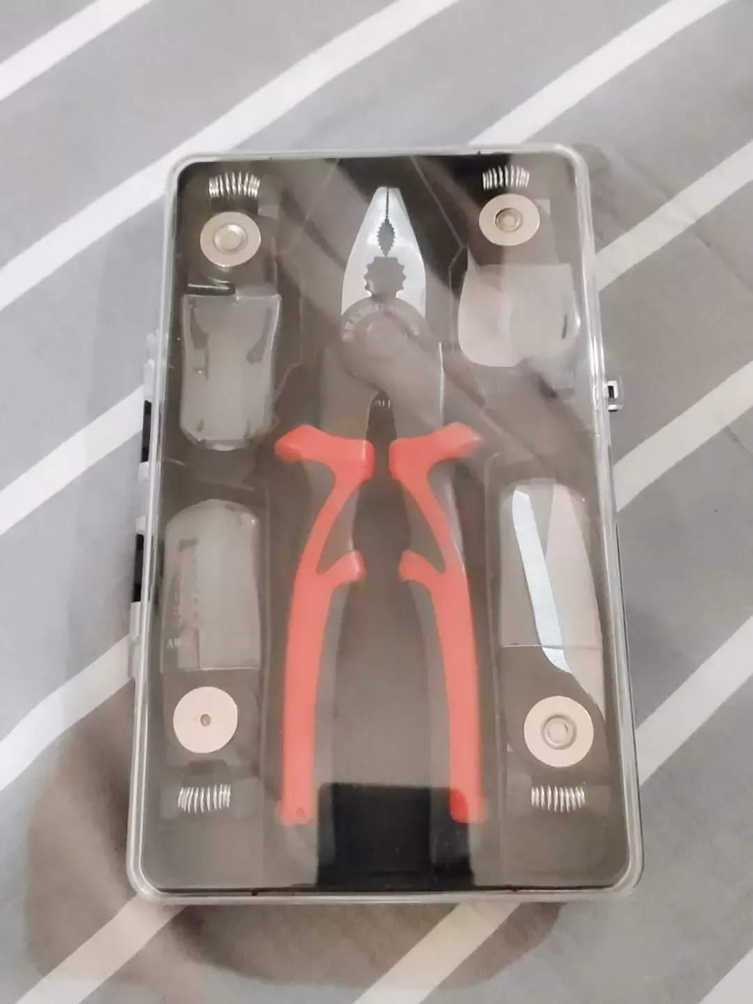 I've found these pliers to be an invaluable addition to my toolbox. The interchangeable components are not just a gimmick but a genuinely useful feature that has made a variety of tasks much easier. Whether I'm doing electrical work, plumbing, or general repairs, the ability to switch components on the fly has been a game-changer. The build quality is impressive, with each component feeling robust and well-made, ensuring these pliers can withstand heavy use. The grip is comfortable even during extended use, and the versatility in functions, from wire cutting to stripping, adds to its value. They've performed reliably in every task I've used them for, demonstrating that they are not only built to last but also built to perform.