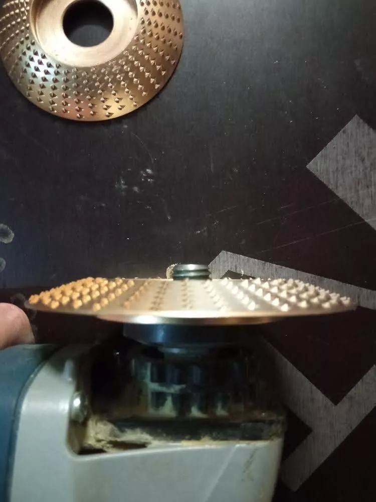 Very handy for working on log furniture. Fits my Dewalt grinder perfectly and cuts down on hand labor. Highly recommended.