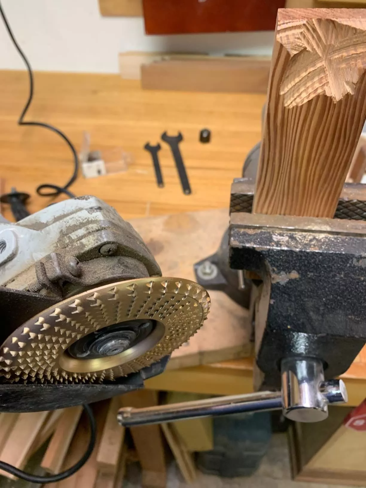 This carving disk set made it a breeze for me to carve the seat of a chair and shape its arms and legs. It's great at removing a large amount of material swiftly. Once you get the hang of it, you might find yourself setting aside your rasps and spoke shaves. The three different contours of the disks are perfect for scooping, sculpting, and flattening areas with precision. After that, all you need is a bit of sanding to smooth out the lines from the angle grinding. It's way quicker than relying solely on hand tools.