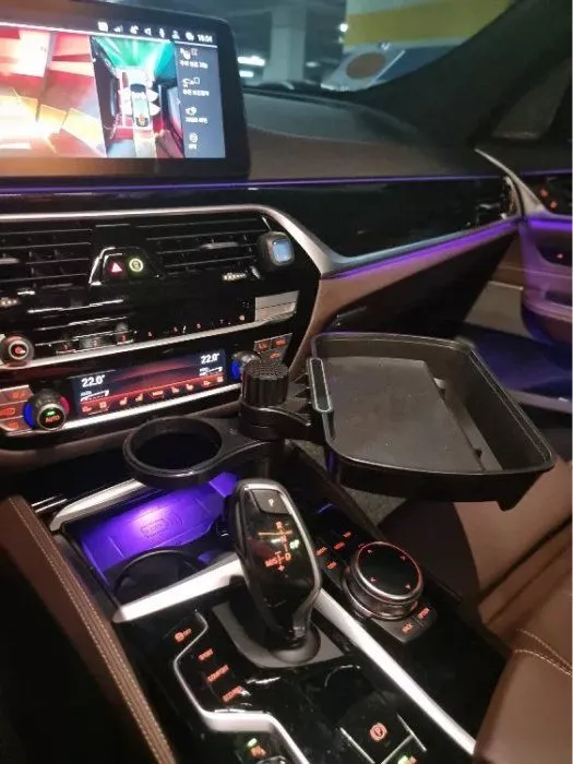 Absolutely adore this car cup holder tray! It's got two cup holders, which is brilliant, but I do wish it had dual trays. My husband, a frequent traveler, uses it in his truck for his snacks and drinks. The craftsmanship is superb - it's incredibly sturdy and well-made. A definite recommendation from me. You'll love it!
